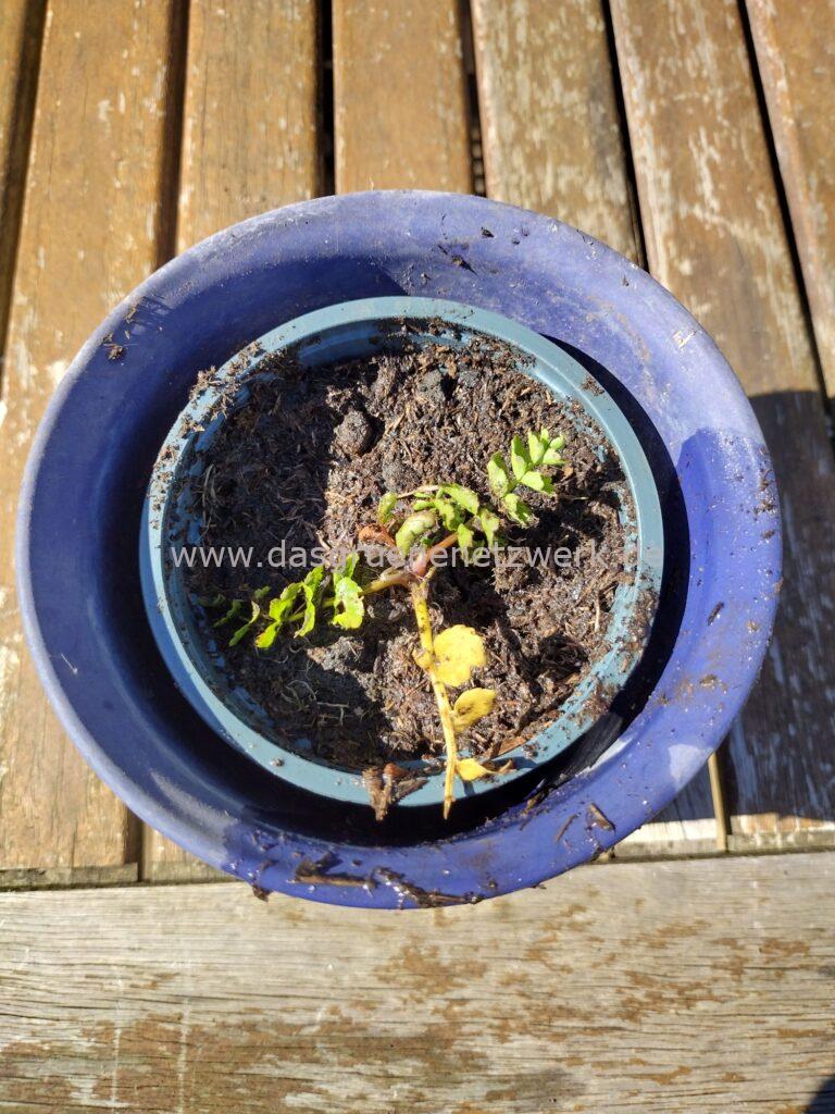 Zwei Pflänzchen überwintern gerade Indoor im kühlen Pflanzenzimmer.