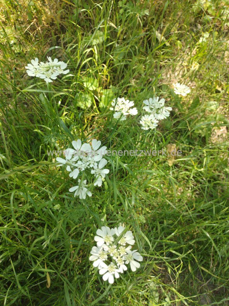 Dieses filigrane einjährige Wiesenunkraut hat sich bei uns schon im ersten Jahr selbstständig versamt. Sobald der Bestand etwas größer ist, wird gegessen. Bis dahin muss ich dafür sorgen, dass es immer genügend freien Boden gibt und die zierlichen Pflanzen nicht überwachsen werden. Der Doldenblütler ist also nicht nur essbar sondern auch absolut insektenfreundlich.