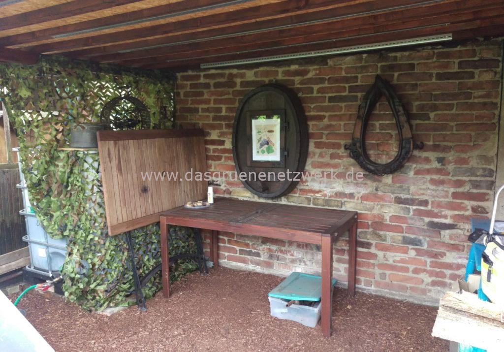 Platz für Geräte ist immer noch vorhanden, aber jetzt auch Platz für Pflanzen zum Überwintern.