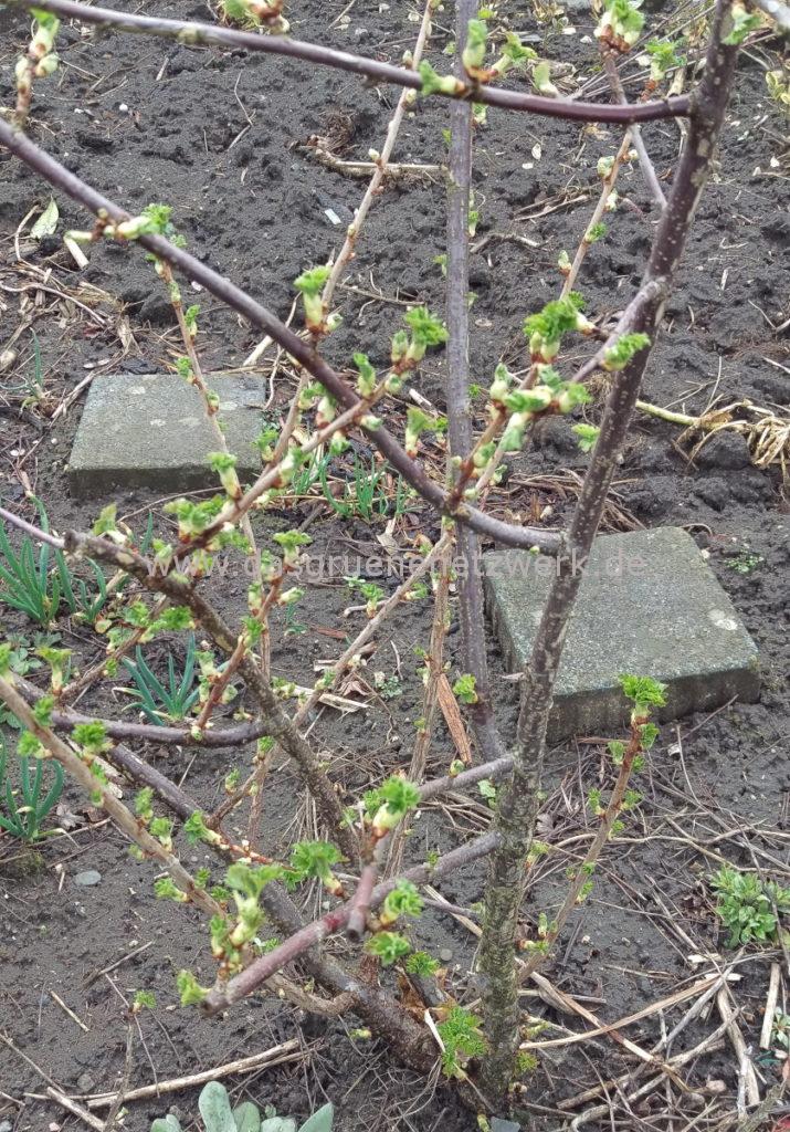 Wir haben die Sträucher einmal komplett runtergeschnitten und spaliert. Danach hatten wir immer noch genügend Früchte für Marmelade, Likör, Relish und zum Naschen.