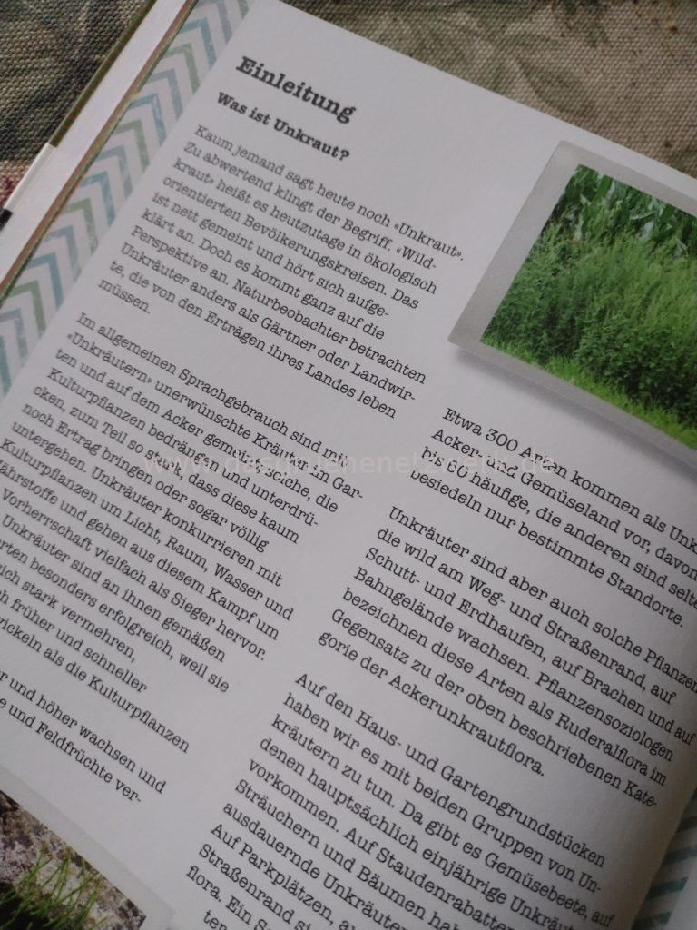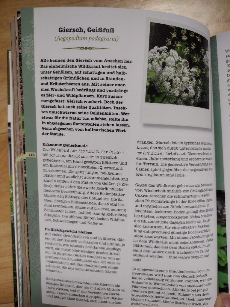 Die Autorin stellt viele der gängigen „Unkräuter“ sehr ausführlich vor und beschreibt nicht nur deren Aussehen sondern auch den Nutzen für Mensch und Natur. In manche Pflanzen möchte man glatt sofort reinbeißen und bei anderen stellt sich der Aha-Effekt ein, weil man genau nachlesen kann, wie man sie dauerhaft – manuell- beseitigen kann.