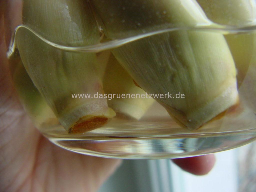 Liest sich komisch ist aber so. Die Samen keimen besser, wenn sie mindestens über Nacht in Orangensaft eingelegt werden. Dann ab ins Substrat, nur leicht bedecken und keimen lassen.
